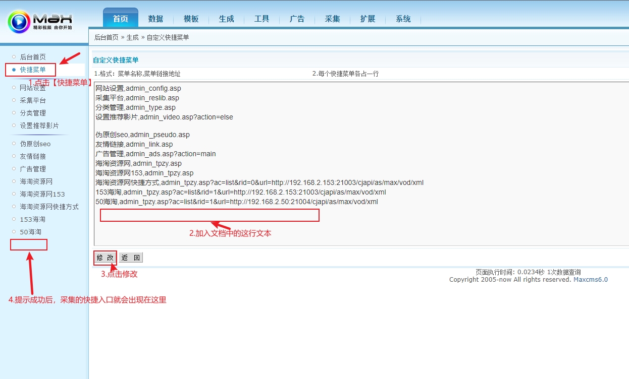 • 本站采集插件已经可以适配MaxCms4.0支持在线播放的采集,快速更新,稳定播放!